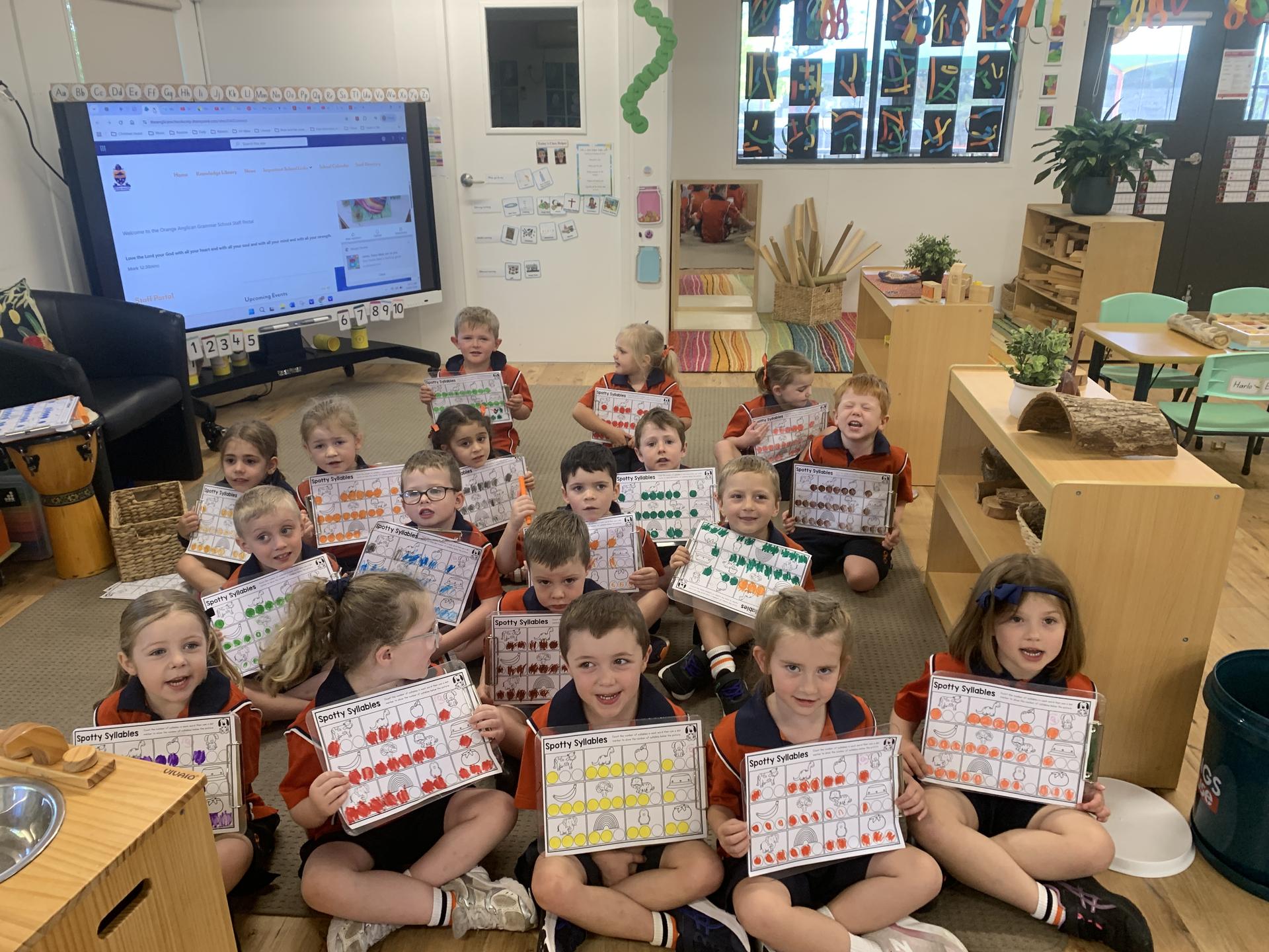 In class, students have been developing their phonological awareness by learning about syllables, often described as the “beats in a word.” Through activities such as clapping, tapping, chanting and listening games, students are learning to hear and identify syllables in familiar words. These skills are essential building blocks for reading and spelling and support students as they begin to decode and encode words.